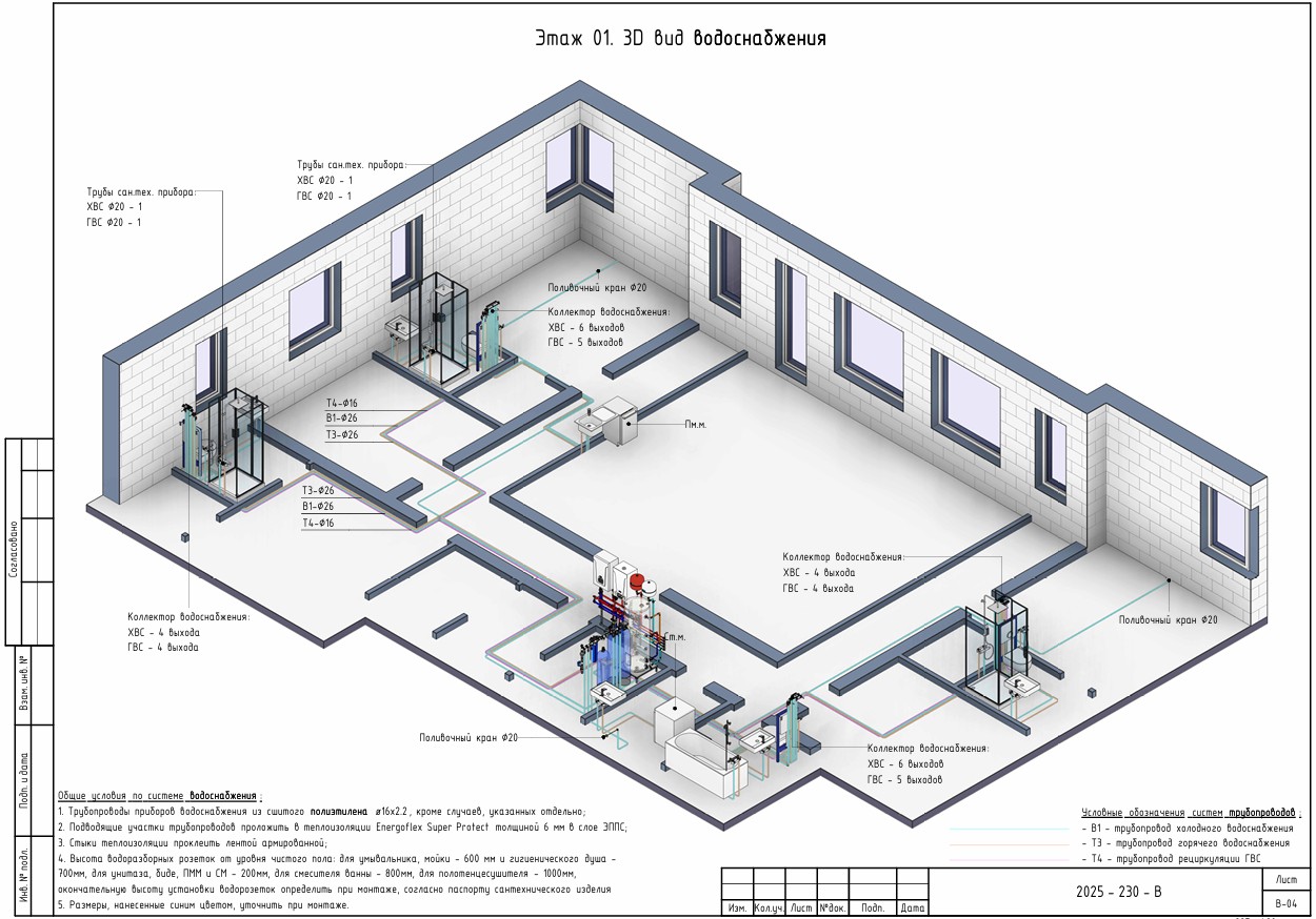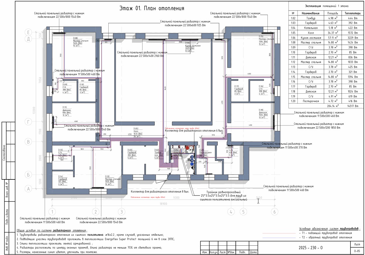 Приводим выборочно иллюстрированные примеры разделов полноценного проекта отопления, водоснабжения и канализации. Все проекты строго соответствует действующим ГОСТам, СНИПам и нормам безопасности.