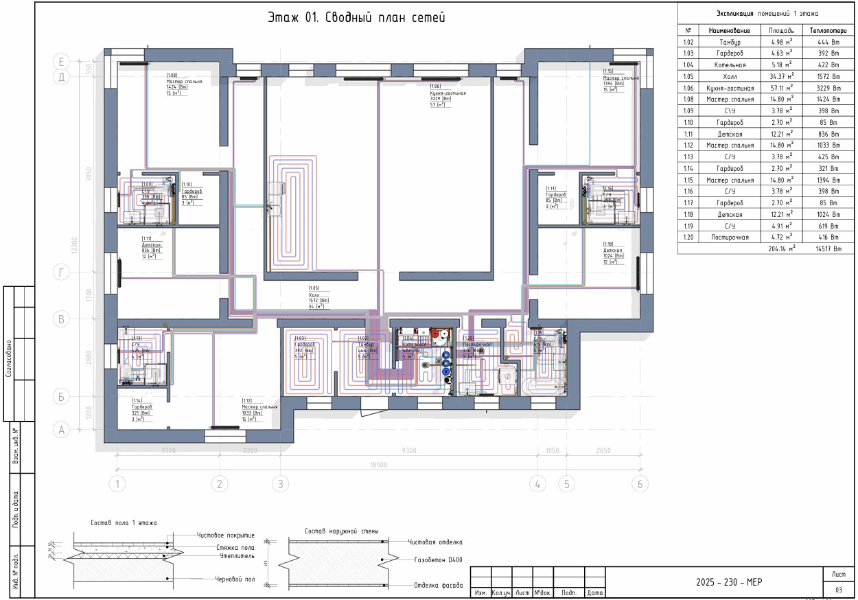 Проект отопления учитывает всё оборудование и материалы до каждого отдельного фитинга. Вы не оплатите ничего лишнего.